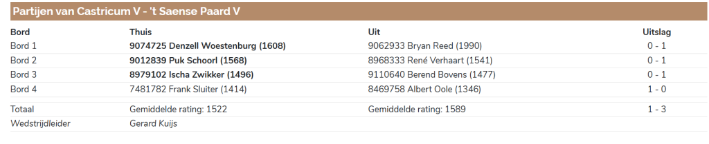 | Abdi Saïd 1200 D | – | Bram Kortekaas 1747 C | 0-1 |