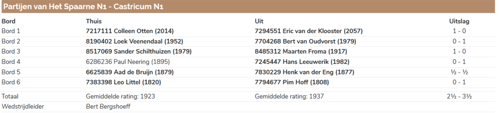 Wouter Beerse 1939 A | – | Kees Lute 1871 A | 0-1 |