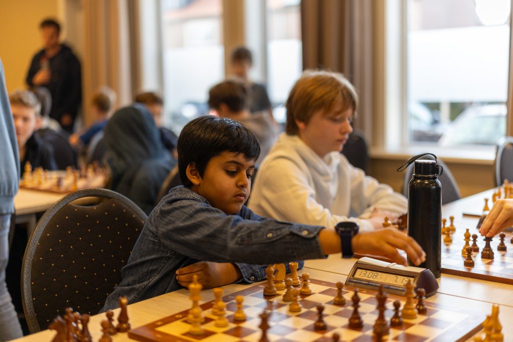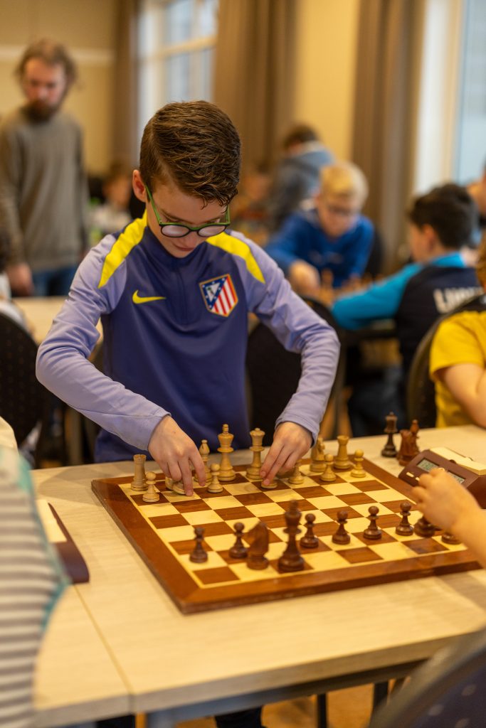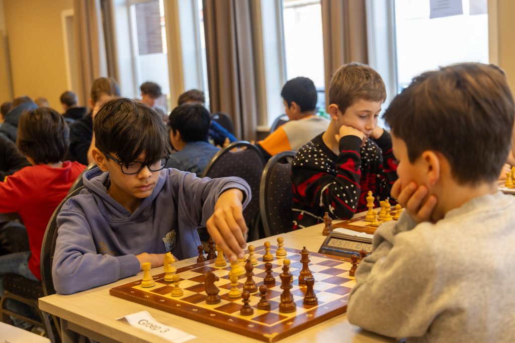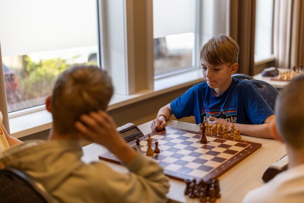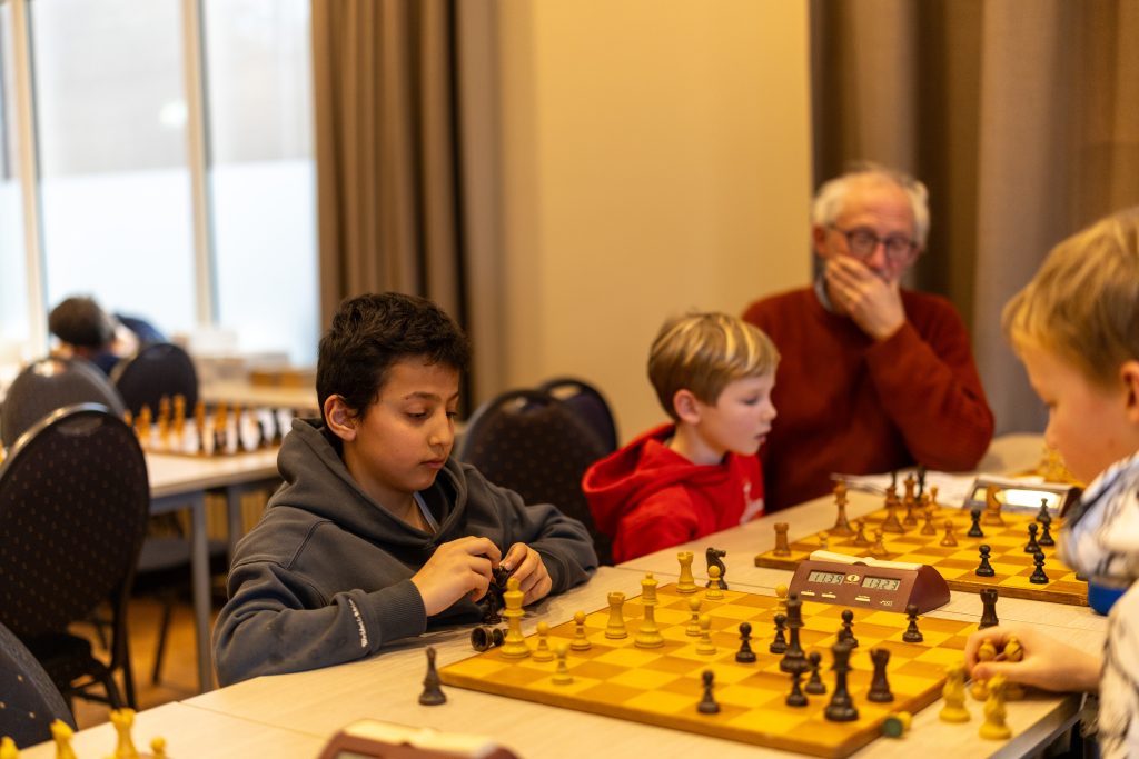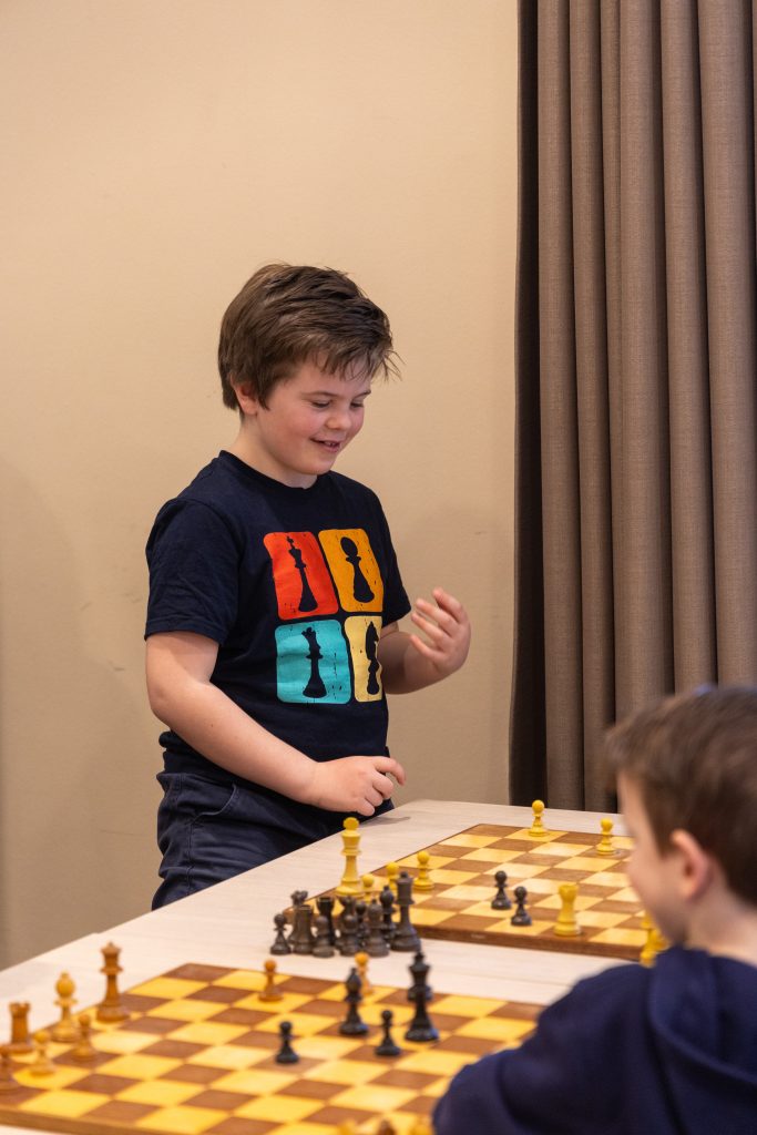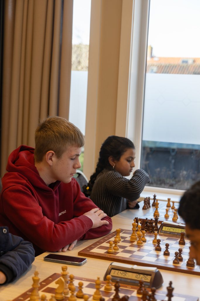 Hidde speelde een mooie partij tegen Gerard van Pinxteren. Gerard speelde het zeer scherp en gooide zijn koningspionnen naar voren. Dat zien we graag! Hidde had zicht op een aanval via de open f-lijn maar Gerard had dit gevaar direct kunnen neutraliseren met Ta- of Thf8. Hij koos voor een dappere, maar speculatieve paardzet. Daarmee liet hij de witte dame toe op de 7e rij met schaak! Van een ruime + 1.8 voor zwart schoot de evaluatiebar naar -2. Het was nog te verdedigen, maar de foute zetten waren veel makkelijker om te doen dan de goeie en dus liet Gerard zich mat zetten. zie partijen naspelen