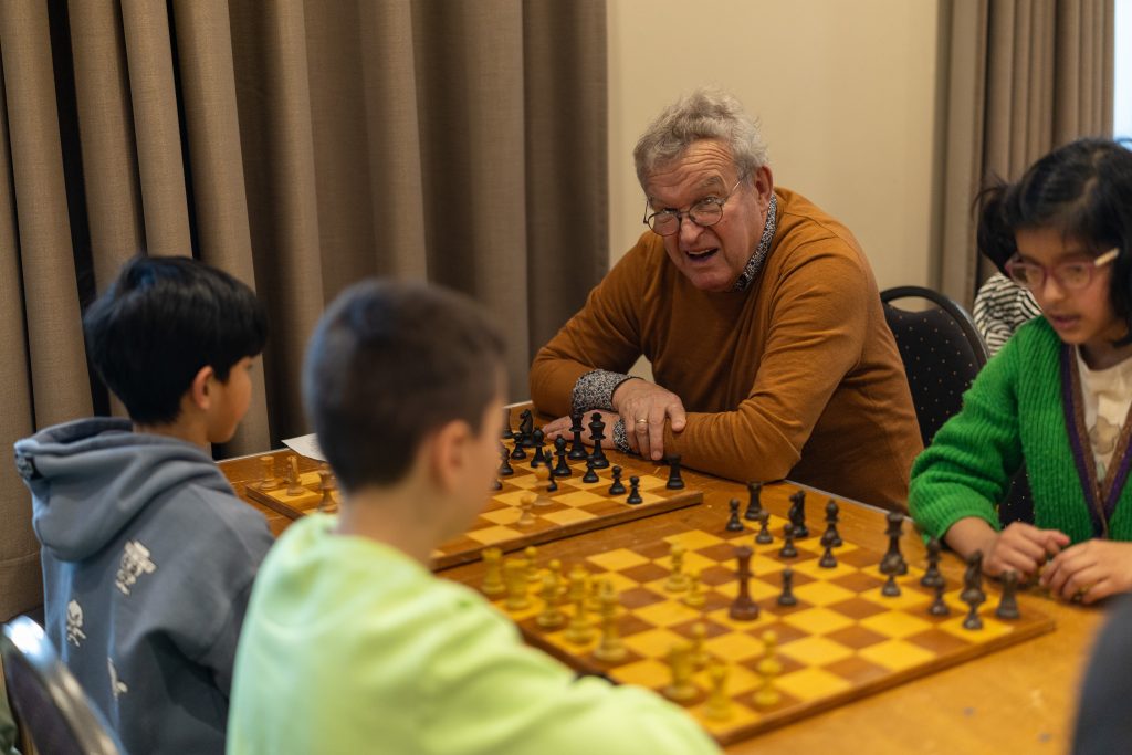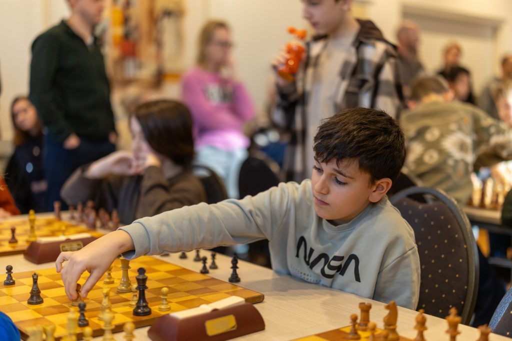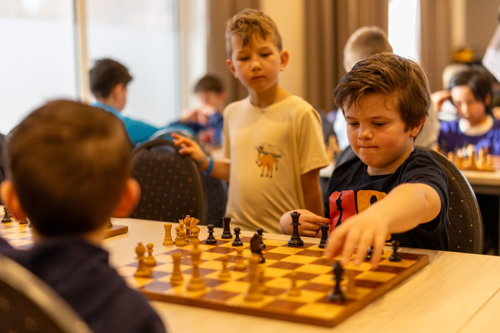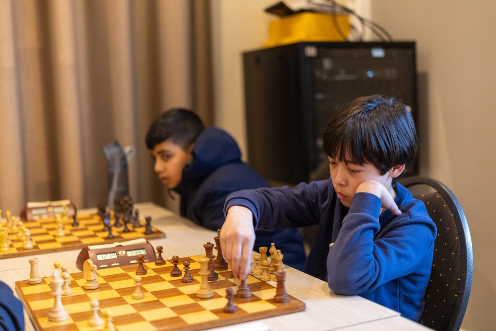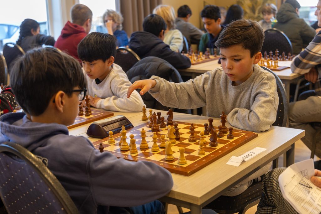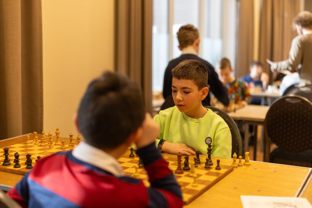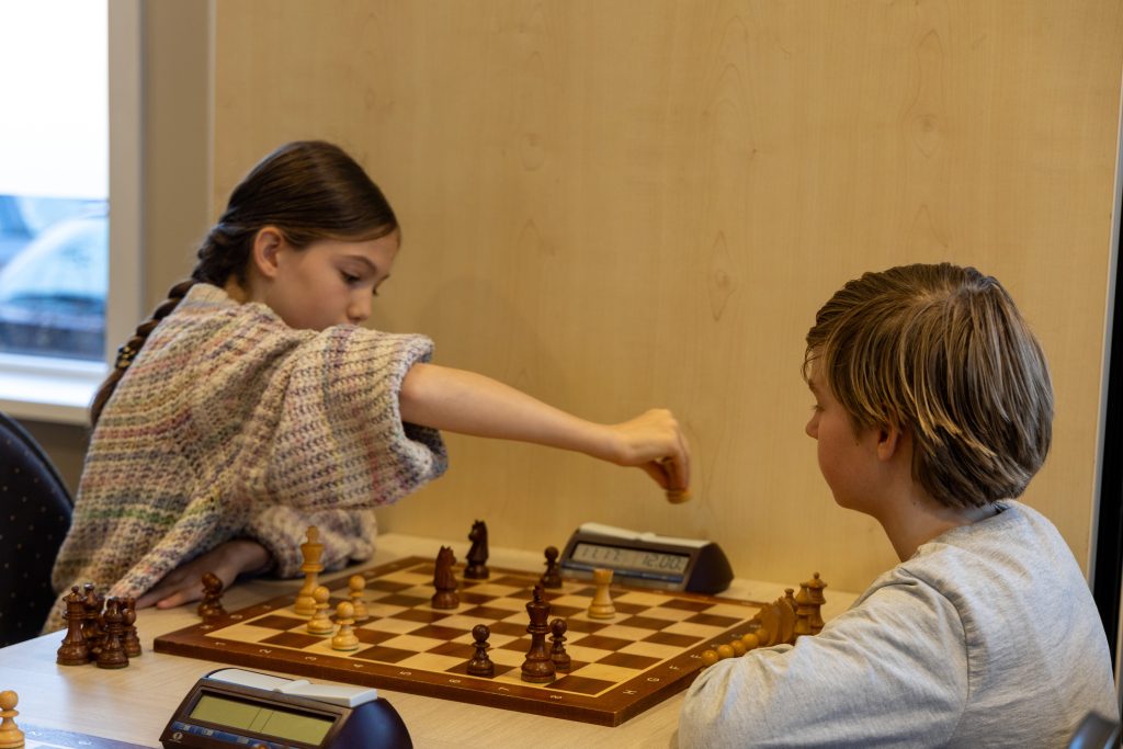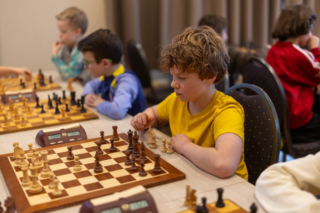 Hidde speelde een mooie partij tegen Gerard van Pinxteren. Gerard speelde het zeer scherp en gooide zijn koningspionnen naar voren. Dat zien we graag! Hidde had zicht op een aanval via de open f-lijn maar Gerard had dit gevaar direct kunnen neutraliseren met Ta- of Thf8. Hij koos voor een dappere, maar speculatieve paardzet. Daarmee liet hij de witte dame toe op de 7e rij met schaak! Van een ruime + 1.8 voor zwart schoot de evaluatiebar naar -2. Het was nog te verdedigen, maar de foute zetten waren veel makkelijker om te doen dan de goeie en dus liet Gerard zich mat zetten. zie partijen naspelen