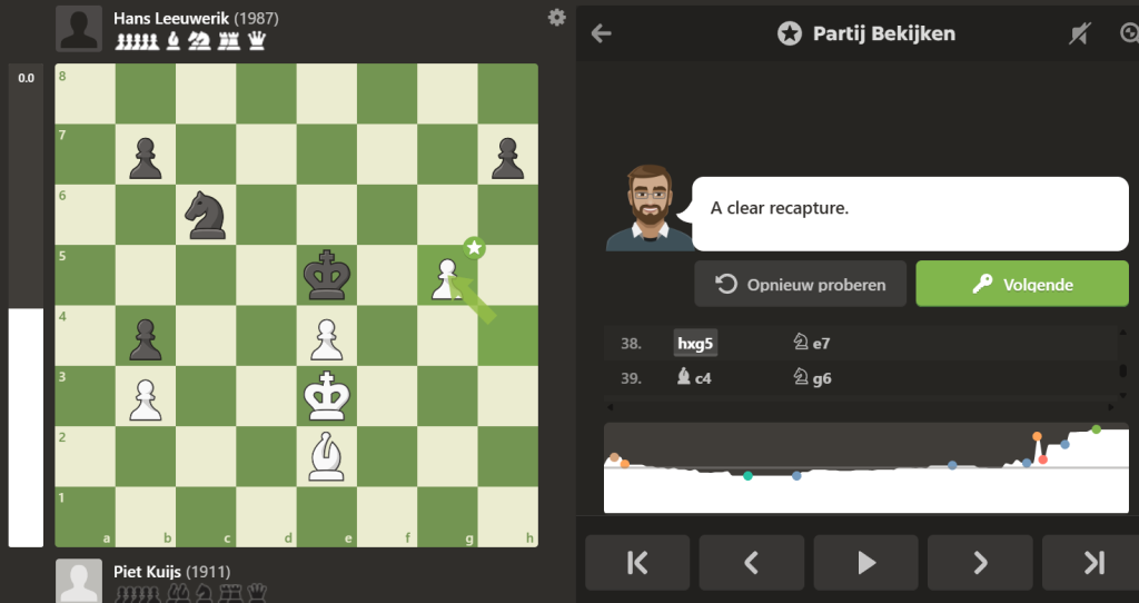 Ook wel eens leuk, want de vorige partij won Hans onverdiend, dus revanche voor Piet. Zie partijen naspelen met analyse van Piet.
