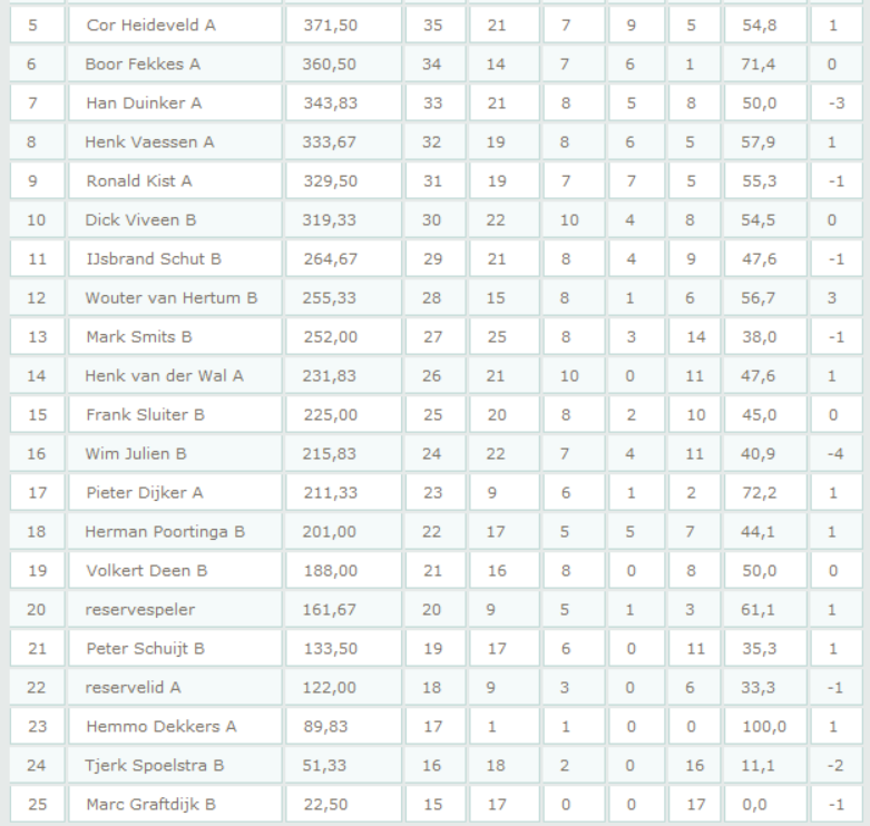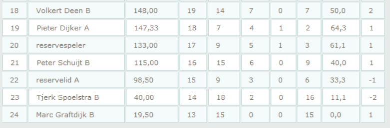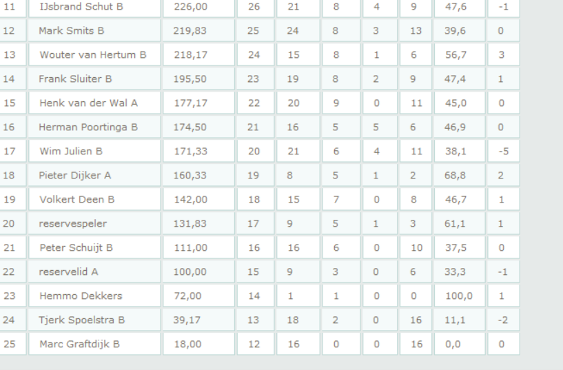 Afberichten per e-mail uiterlijk voor dinsdag 12.00 uur naar corheideveld@hetnet.nl. Voor het geval van een onverwachte afzegging graag bellen naar Cor Heideveld 06-23026085.