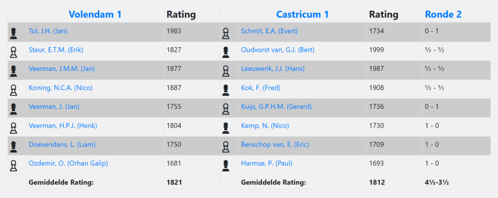 | Sjoerd Hoekstra 1604 C | – | Denzell Woestenburg 1608 C | ½-½ |